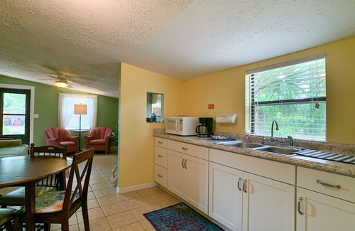 Quiet and peaceful and yet close to De Land, only 20 miles from Daytona Beach and just down the road from the historic Old Spanish Sugar Mill at De Leon Springs State Park. One hour and fifteen minutes north of Walt Disney World. Bar-BQ, microwave, refrigerator, electric cooker, tea kettle, coffee pot, toaster, TV, professional pest control. NO Wi-Fi, NO ACCESS TO POOL OR LAUNDRY ROOM.