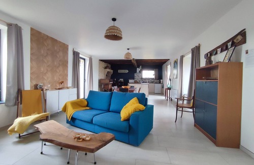 Completely redone in 2019, La Maison Volganza offers a large living room with kitchen, a bedroom (with queen size bed and child's bed) with its bathroom (double sink), laundry room, separate toilet.