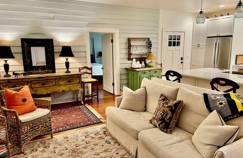 Charming 1905, 2 bedroom, 2 bath, 1400+ square foot Victorian cottage located in the heart of historic Milton, NC. Less than a 3 minute walk to Milton attractions/restaurants. Only 2 miles/5 minute drive to VIR. Fully restored & updated in 2020. Central heat and air conditioning as well as all modern conveniences including Tesla charging station and Apple TV. Spacious, modern, light-filled living room/kitchen addition with full-size washer & dryer. Two bedrooms, each with Queen bed & adjoining, private full bath. Dining room that doubles as office space. Ample private off-street parking. Outdoor porches with seating on both the front and back of the cottage. Beautifully furnished! One of a kind!