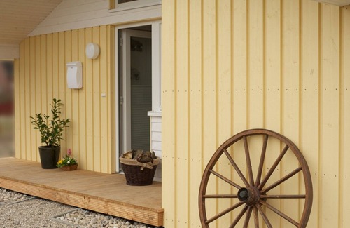 New cozy cottage on the dike / beach on the North Sea with a green natural beach between Büsum and St. Peter-Ording. The 75 square meter exclusive Scandinavian wooden house with 500 sqm of land / lawn has a semi-covered wooden deck around a corner. The house is at ground level and handicapped accessible. Dogs are also welcome guests. The property is fenced. It is situated in a quiet cottage area and has a sauna and a fireplace. Enjoy the fresh sea air and tranquility ... relax in the bedroom with open patio door or enjoy the sunset on the porch swing with a glass of wine, nice walks and romantic togetherness front of the fireplace ... and and and