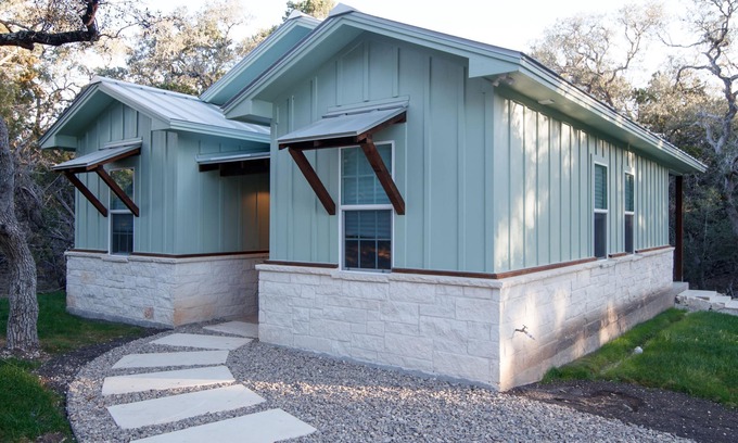 Experience the Texas Hill Country with a cottage in the woods. New construction of this two-bed room, two- bath Texas style architecture. Behind a gated entrance surrounded by acres of woods.