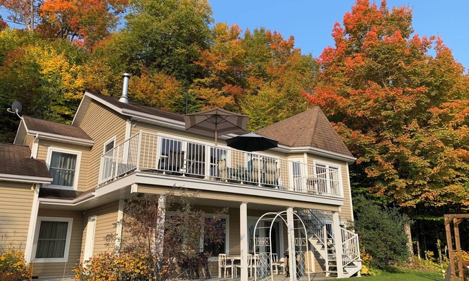 This is a perfect place by the lake (2 min walk) for people who want to get away from the city, for a QUIET family gathering, walks in our 100 acre forest, OR simply a big chill. This is located on the edge of the Lake Thor and near the Frontenac Park. There are no immediate neighbors!!! NOTE THAT IN SNOWY CONDITIONS ONLY A 4 WHEEL DRIVE CAN MANAGE THE HILL ! If you are looking for a place lost in the middle of the woods - but with a stunning view- you won't be disappointed! Note that we do not allow parties in our property. Finally , note there are surveillance cameras OUTSIDE ONLY .