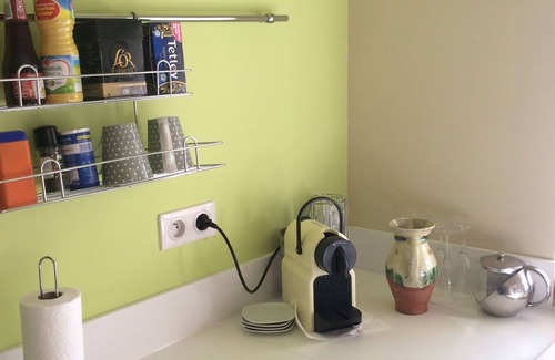Baby equipment on site: cot, bath.