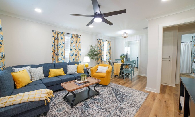 Welcome to the Leontyne house of Cottage Row. Leontyne is the fourth house of Cottage Row and is located in Historic Downtown Laurel. It's within walking distance to many shops, eateries, The Lauren Rogers Museum of Art, and Gardiner Park. The Leontyne Cottage is inspired by shades of blues and yellows, this cozy cottage is pure sunshine, sweet as honey and bright as lemonade.
