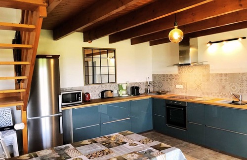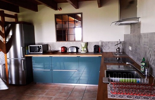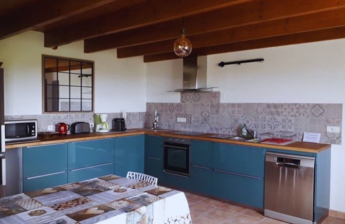 This rental consists of a large living area: equipped kitchen (refrigerator, microwave, oven, freezer, dishwasher, coffee maker, toaster, kettle and citrus press), large and beautiful friendly table; living room with fireplace, TV, DVD player, board games, and a long view to savour the breathtaking landscape that awaits you.