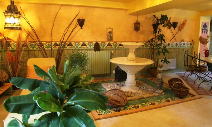 Free access to the Moorish patio as well as to the flower garden where garden furniture, deckchairs and benches await you near the water lily pond.