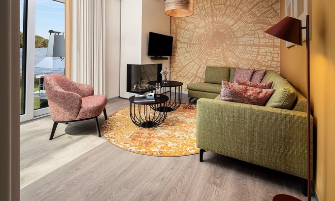 Details: Children's animation Family animations : activities accessible free of charge and other fees Pets allowed : Pets are allowed in cottages. However, a supplement is required for specific cleaning at departure. (Max 2 animals per accommodation) Baby chair : on loan Air conditioner Kids club : Kids Club Lake / river distance : 800 m Bedding : Included Towels : Included Crib : on loan Beds made on arrival : Included Final cleaning : supplement Number of stars Water park : Aqua Garden with outdoor infinity pool, indoor pool, children's paddling pool and hot tubs Possibility of bike rental : paid Near airport : Brussels Airport #BRU (133.4 km), Cologne-Bonn Airport #CGN (162.5 km), Düsseldorf Airport #DUS (123.9 km), Amsterdam Schiphol Airport #AMS (177.0 km), Eindhoven Airport #EIN (60.2 km), Luxembourg-Findel International Airport #LUX (163.5 km) Restaurant : several catering services in the field Spa : paid - massages / facial and body treatments Tourist tax (surcharge) : 2€/person Green key Barbecue kettle Fireplace Freezer Cooked Microwave oven Toaster Dishwasher Number of bedrooms : 2 Number of pieces : 3 Number of bathroom : 1 Cooking plate Fridge Surface (m²) : 77 Television Terrace View : lake