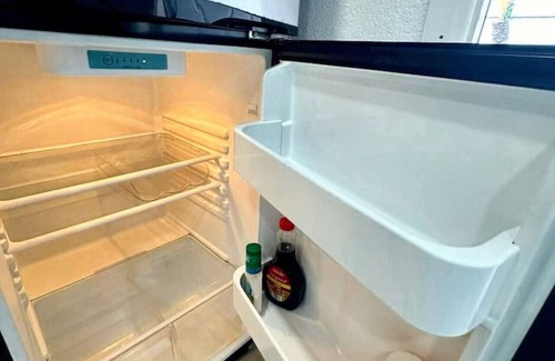 *Kitchenette: The kitchenette, though compact, is fully equipped with a microwave, fridge, coffee maker, and basic utensils, making meal prep a breeze. Large windows bathe the space in natural light, enhancing the warmth and inviting ambiance.