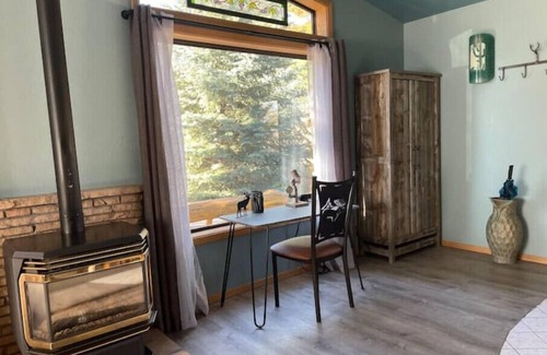 If your stay is not just for pleasure and you need to get some work done, we got you covered with a working space in front of a huge bay window with serene views that can sometimes be distracting…the front yard is a favorite spot for deer, antelope and a variety of birds.