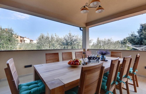 This vacation home is located in a quiet residential area of Vinkuran, not far from the historic city of Pula. It is a terraced house, newly built and the interior is very well furnished and fully equipped. On the first floor there is a living room and dining room with kitchen, where all guests can dine and relax together - from here you can go directly to the terrace. Also on the first floor there is a bedroom, a bathroom with shower and a separate toilet. Upstairs there are three bedrooms and two bathrooms with shower. The cottage is ideal for a group of friends or families who want to spend their vacation together, but also have their privacy. The property is fenced and handicapped accessible. The furnished terrace is ideal for socializing in the evening with a good glass of wine or well-prepared barbecue. So book this beautiful vacation home right away!