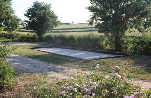 Large relaxation area with outdoor swimming pool and sports activities: Bikes, Pétanque, Volleyball, Badminton. View of the south-facing ségala.