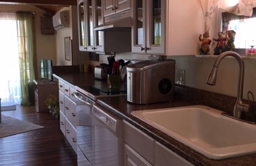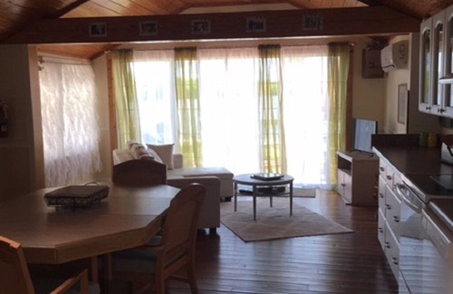 This is a small cottage with an attached in-law unit, that has the option to rent the house as a 2-bed bath due to this attached in-law unit, which has its own bathroom and entrance. The master bedroom has a king-sized bed in the, there is a full kitchen with a dishwasher included. The living and dining area are an open floor plan, the wall facing the water is a large sliding door that opens out to a private deck. There is a sofa bed in the living room that opens out to a full bed.. The main bathroom has a newly tiled stall shower. The attached in-law unit has a twin daybed and a bathroom with a stall shower, a recliner, and a murphy desk. Prices are based on renting the main part of the house as a one-bedroom, one bathroom. Inquire for pricing and availability if you are interested in renting it as a two bed, two bath. There is also an added refundable security deposit for the attached in-law unit.