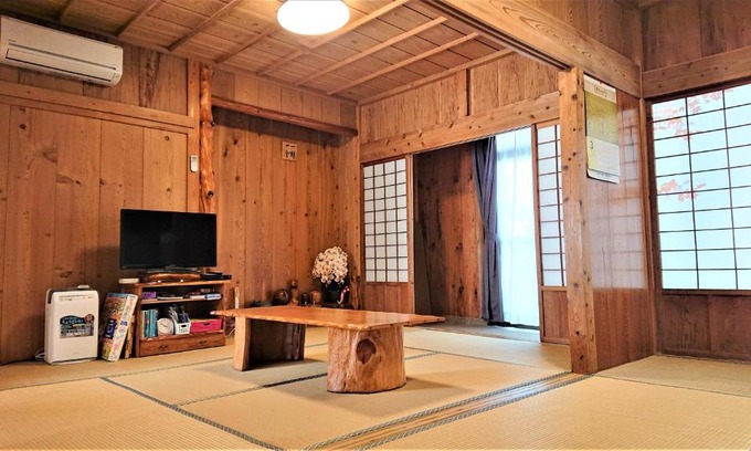 Located 6.2 mi from Shiratani Unsuikyo, Cottage Yakusugi features Yakusugi Japanese cedar in its architecture and decor, including its walls, ceiling, pillars and furniture. The property staff offers tours of Shiratani Unsuikyou, Yakusugi Land and Yakushima upon request. Guests will have the entire cottage to themselves during their stay. Free parking is available for guests. There is a dining area and a kitchen complete with an induction cooker, microwave, toaster, dishwasher, refrigerator and kitchenware. The property features views of the mountain. Cooking utensils and tableware are also provided. The private bathroom has a shower, bath and high-tech toilet. There is a washing machine on site. Free use of bicycles is available at the property and the area is popular for hiking. A free pick-up and drop-off shuttle service is available to the airport upon prior request. Yakusugi Land is 8.1 mi away while Nagata Beach is 9.3 mi from Cottage Yakusugi. Miyanoura Ferry Terminal is 1 mi from the property. Mount Miyanoura in Yakushima is approximately 25 mi from the property.
