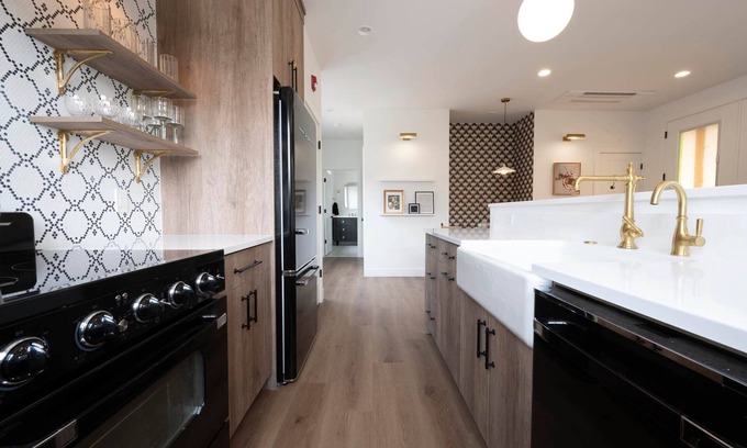 While you're here, you can enjoy all the comforts of home and more, including a full-sized refrigerator/freezer and an oven, as well as a stovetop and a dishwasher. Other amenities include laundry facilities, kitchenware and utensils, a dining area, and a sitting area.