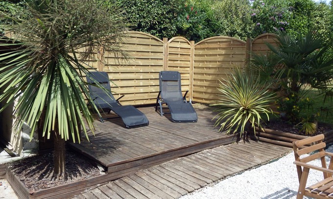 An enclosed garden is at the back of the house equipped with garden furniture and barbecue