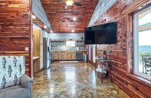 Newly built rustic cabin with million-dollar views, located in Cotter, AR—“Trout Capital USA.” Just 0.25 miles from Big Spring Park, coffee shops, and diners. Features a fully stocked kitchen with top-tier appliances, fiber optic internet, Tempur-Pedic mattress, and a commercial-grade washer & dryer. Boat-friendly with ample parking. Kayak and shuttle services available for nearby rivers—message for details. Comfort, convenience, and adventure all in one.