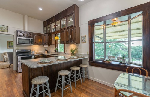 This family homestead located on one of the most spectacular spots on the San Marcos River was built in 1920 and has been in the family of the current owners now since 1950. Lovingly restored and brought into modern times by the very people that were raised within the walls, the history and sense of peace and pride that permeate the space is apparent to all that enter.