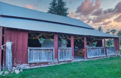 Forget your worries in this serene ranch setting. This is a 2 bedroom cabin with 1 bathroom. It has a front and back deck, kitchenette with dishware, manicured lawns and access to outdoor areas including 2 pickleball courts, an outdoor kitchen, Rainey Creek river that joins the fly fishing mecca Snake River and a magazine photo shoot arbor at the foot of Baldy mountain make this memorable vacation spot worthy of return year after year.
