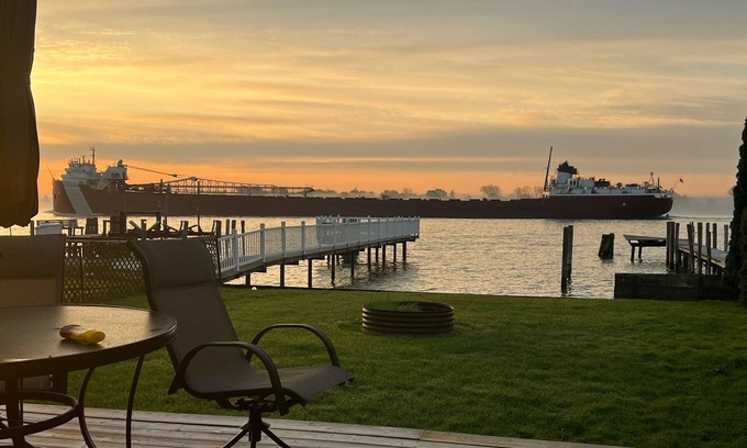 My home sit on 40 ft of frontage On the St Clair River, comes with Boat slip and Pier that sits at the end of the dock that you could sit and relax or fish off of. We have one of the best VEIW on the River we’re the Lake freighters travel past all day . Large deck to relax and enjoy the day, 3 miles from down town Marine City & 4 miles from downtown Algonac. Boat launch 1 mile away and plenty of parking for your boat, it’s a fisher mens dream vacation home