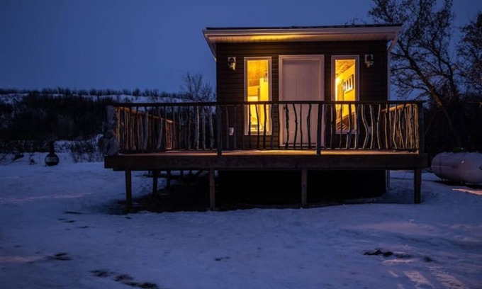 Take it easy at this unique and tranquil getaway. Very private, newly built cabin tucked into a prairie coulee. You will quickly forget you are only minutes away from the city. Prepare an evening meal with your well equipped kitchen. Watch the sunrise on the large wrap around deck. There are many acres of yard to explore as well. You really will have many of the comforts of home in a place like no other! Great place to relax