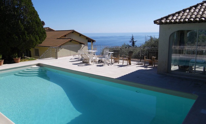 Couleur Piscine: Semi-detached villa, magnificent sea view 4 to 6 people | Villa in Èze