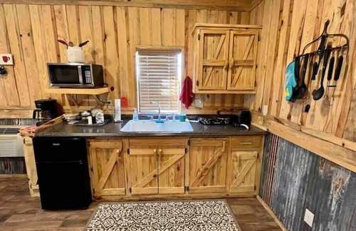 The space is a Rustic one bedroom, one bath cabin located on the same property and childhood home of the host. The cabin is located just off a rural highway on @ 40 acres.