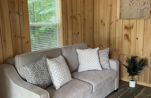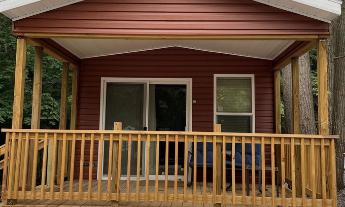 Great little cabin just 20 minutes away from The Ark. Enjoy a peaceful night relaxing on the deck of this cute little cabin or play some games while waiting for your dinner to be cooked on the gas grill. Enjoy a game of ping pong at the pavilion or take a swim at the pool. The great cabin is just beside a little stream and next to the woods so you could take a walk and enjoy taking in the beautiful view.