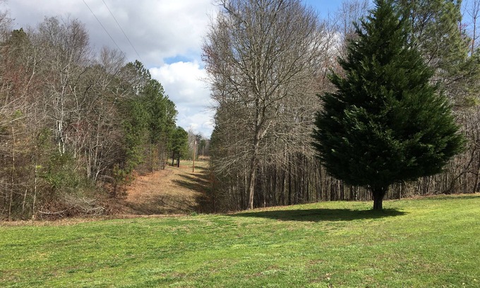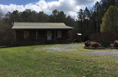 This cabin will remind you of a simple way of life from times past! 'It is comfortable and peaceful here', said a recent renter. The front porch across the full length of the house makes a great place to sip coffee, relax, and listen to nature. It's unique location allows for retreat from the hustle and bustle of city life! There is a pond only 100 yards away at the top of the hill where some folks like to try their luck at fishing. Just open the gate and walk right up the hill! The pond near the house has developed problems and is not holding water at the usual depth. Still fish in the pond but they are small!