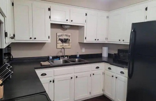 This house is laid out uniquely with the kitchen, bedroom, living room and half bath on the lower floor. On the upper floor, you will find a master bedroom with a queen, a second bedroom with a queen and a very spacious full bathroom with a shower/bathtub. Nice large areas and walkways make it nice for larger groups. While we have enough beds for 8 people, arrangements can be made for more people that are willing to bring cots, sleeping bags, blow up mattresses, etc...
