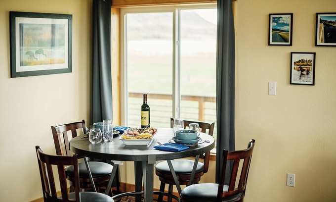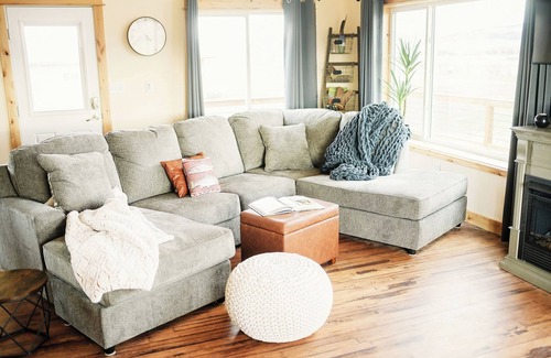 Twila has a full kitchen with all the cooking essentials, spice rack, coffee and BUNN coffee maker, a washing machine and dryer, blackout curtains for the huge picture windows, built in AC, full heating, dishwasher, and refrigerator with ice machine. The Twila sits on 6 private acres, with private driveway. The wraparound deck and huge picture windows boasts the perfect place to take in the most gorgeous of sunrises and sunsets. The gas grill and outdoor dining furniture makes it easy to take your morning coffee or home cooked dinner on the deck all the while experiencing Montana's surrounding Big Sky mountain views. The handbuilt fire pit with permanent benches and seating allows for world class star gazing around the campfire. Spacious, peaceful and breathtaking, The Twila is a unique, beautiful, one of a kind structure and experience. You might even catch a cattle drive! We keep your convenience and enjoyment in mind by also providing coffee, coffee creamer and sugar, extra hygiene amenities, wifi, hairdryer, laundry and dish soap, stoneware sets, and campfire wood and roasting sticks for the outdoor fire pit. Restaurants, bars and other attractions are within walking distance and recommendations and directions are happily provided and suggested!