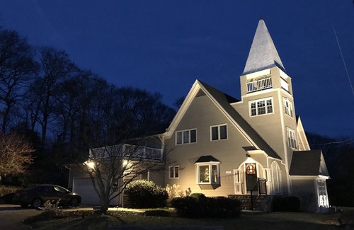 Welcome to the Country Church Converted into a Home by the Beach, an enchanting retreat perfect for couples looking to celebrate their love in a unique and picturesque setting. Nestled amidst the serene beauty of South Kingstown, Rhode Island, this tasteful conversion offers a romantic atmosphere that is both cozy and captivating. Imagine exchanging vows under the historic bell tower or hosting your reception surrounded by lush greenery and stunning night skies—a dream come true for any couple planning their wedding.