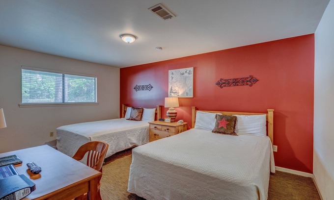 We have a total of 13 Villas. Each Villa is 1 bedroom with 2 queen size beds, 1 full bath, living room, Kitchenette, even a washer and dryer. 4 people to a room. When you stay at our Villas you get access to the Crown Colony Country Club(on site). Discounted golf, Grille, pool,24 hour fitness center and pickleball (only up to 4 people per Villa)
