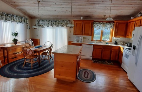 Hydrangea Cottage is bright and spacious with an open floor plan, cathedral ceilings, large windows and skylights.
