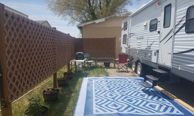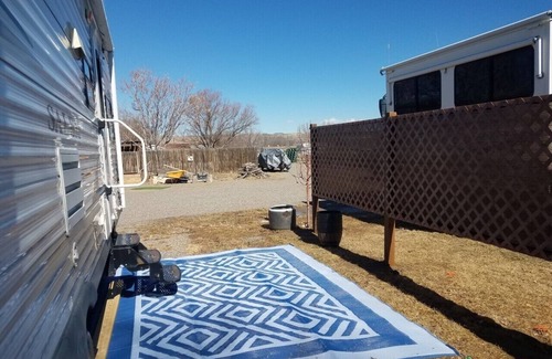 Located 4 miles from Bloomfield, Country Comfort lives up to its name. Located on 2.5 acres in farm country, it is shared with another RV and residence. Very quiet and centrally located for exploring the great N.W. area of New Mexico. Whether you are visiting the ruins, fishing or hunting it is the perfect spot to make camp. Beautiful views of the bluffs and fantastic sunrises and sunsets. Don't be surprised to find fresh farm eggs in your frig upon arrival. 40 min drive to Chaco entrance.
