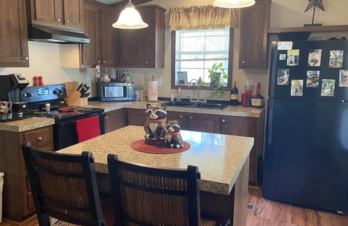 Both the outdoor kitchen and the cottage have a full set of dishes and cookware. I provide the coffee, water, and a limited amount of snacks. There are two televisions in the cottage as well as laundry facilities. The cottage seats two for dinner but the outdoor kitchen seats 10. There are board games and cards available if you want to have some good ole fashion fun.
