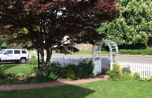 The sitting room has an HD TV and small dining area. There is a fully equipped kitchenette; and a huge master bedroom (queen bed) with HD TV, sitting and desk areas; a bathroom with shower and small tub, fully furnished kitchenette and a second bedroom (queen bed). Guests have full use of the front porch with old fashioned porch swing and wicker furniture - reminiscent of days gone by. There is also a private brick patio with gardens, a water feature, firepit and patio string lights. You have complete access and use of these areas. Enjoy your morning cup of coffee or afternoon cocktails overlooking our lovely gardens either on the front porch or patio.