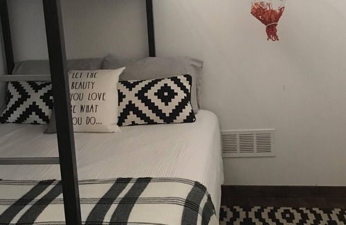 This cozy space is across the driveway from our house. Has a wood stove in the living room and a nice open floor plan with two bedrooms and one bath makes for a nice time with family or friends. We are close to several fun activities such as skiing and sledding at 7 oaks, hiking at the ledges state park, canoeing and tubing down the river, train rides in town or go to the race track just a mile away.