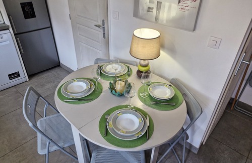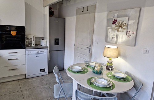 Pleasant house of 25m2 fully furnished, located in a quiet private property with enclosed garden and swimming pool heated to 28 ° from May to late September..Ajoining this studio, a beautiful living space under a covered courtyard of over 10m2 with bar in stones.