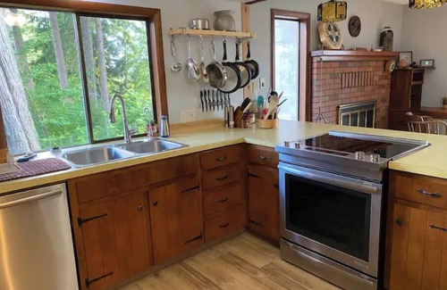 Kitchen has traditional setup and convection oven, Dishwasher, new fridge, new range hood, etc. We stock the kitchen with equipment and utensils. Usually, we have some basic ingredients-cooking oil, rice and starches, seasonings, and such, but there is a good store close to the location. We can also arrange to make available some of the fresh garden items we produce here on the property if visiting in the summer. Let us know if you are interested!
