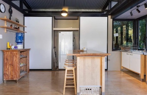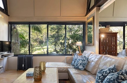 Architectural bright & airy Studio Retreat, beside a creek with wide billabongs - steep cow paddocks opposite - Rainforest surrounds.