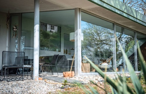In the heart of a verdant setting where nature reigns as an undisputed mistress, discover Horizon P'y, an atypical villa that harmoniously blends into its wooded environment, offering a haven of peace for those seeking a beautiful countryside escape. This unique dwelling, with its large bay windows, opens the living room to the outside, bathing each room in natural light and offering breathtaking views of the surrounding landscape, verdant valleys and distant silhouettes.