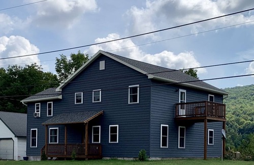 Completely renovated Farmhouse. Four different units, all cozy, clean, and inviting. Each has its own feature , all with their own private deck over looking the River and valley. Cooperstown Baseball Hall of Fame is 25 minute drive. Oneonta NY is 17 minutes and the quaint village of Stamford is 15 minutes away where you can hike Mt Utsayantha!