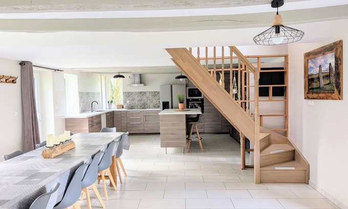 Located in Guemene-Penfao, this 4-bedroom, 2.5-bathroom vacation home lets you experience it all. Fans of nature and the outdoors will love being 16 minutes by car from Forest Gavre and 47 minutes from Brittany Park of Prehistory. You'll easily make the 16-minute drive to Château de Grand-Fougeray or the 24-minute drive to Château de Blain.