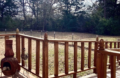 There is a pond on the back part of the property. If you want to give fishing a try we ask that you catch and release at this time. It’s not a swimming pond. If you wade in or decide to cool off in the water then that is at your own risk. The property has a nice mixture of woods and pasture areas and you’re free to roam and explore, but please remember that it is the country and there is always a chance that you meet up with some of the wild life especially at night. This is a NO Hunting/Shooting property. Due to the fact that our property is so small we also do not allow ATVs, go Karts, dirt bikes, mini bikes etc. Please do not go beyond any of the barbed wire fences that are in place since that is other ranchers property in the area.