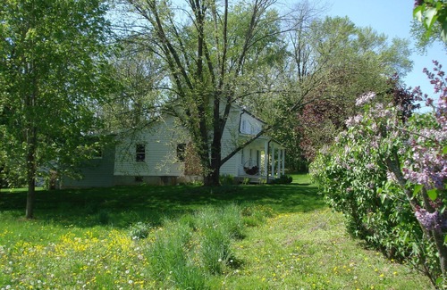 An historic farmhouse on 3 acres of meadow gardens and woods, with views of the open farm fields and the Berkshire mountains. A private pool, 55 feet long, and a picnic table. One mile from the Hudson River, for walking, biking and boating. Four miles from historic Kinderhook village, with a farmers market and excellent bakery and restaurants, and a unique public museum for contemporary art. Ideal for 3 guests -- one full master bed, 1 single bed in small guest room. Can accommodate 2 more using full sofa bed in kitchen.