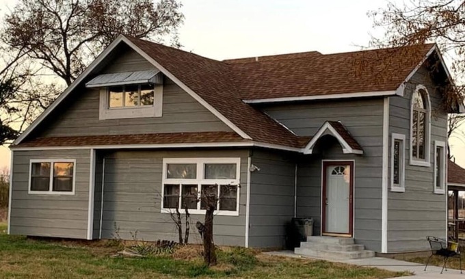 Quiet country stay on 10 acres, with 300+ acres of farmland behind. Located near the lost community of Bodarc (Bois'd arc on the map), the house was constructed from the Bradford mill that once was located next to the steel bridge. The house has been in our family for 3 generations now. It has recently been renovated and we are excited to open it up for guests!