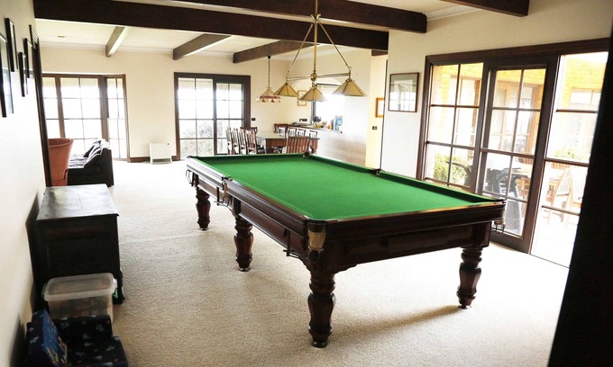 This beautiful country homestead established on 22 acres sits in a prominent location with commanding views over South Gippsland. The home is brick veneer, has been well designed with magnificent exposed Oregon beams and 3 large bay windows capturing the warmth and light from the north. Consisting of 3 large bedrooms, the master bedroom looks out to the garden courtyard and is complete with an en suite luxurious spa bath. The 2nd bedroom has a double bed (and cot available on request). The third bedroom has 4 x adult size and mattress quality bunk beds. (we also have 2 x blow up double mattresses available on request) The living areas comprise a formal lounge and dining area. The fully equipped timber kitchen has been designed to take in the fantastic views. It is well appointed with a double multi-function electric oven, LPG cook top, open grill and a large pantry, the handmade tiles give this kitchen a unique touch. The kitchen overlooks the meals / family room, the magnificent open fire built with stone sourced from the Maldon area is without doubt a special feature of this home. The games room sliding doors open to the outdoor entertaining area providing a natural flow from inside to out. Heating the homestead is via the open fire, 3 x electric bedrooms heaters and 2 portable LPG heaters. There is a substantial pool table, a kids cubby house and large gas Weber bbq.