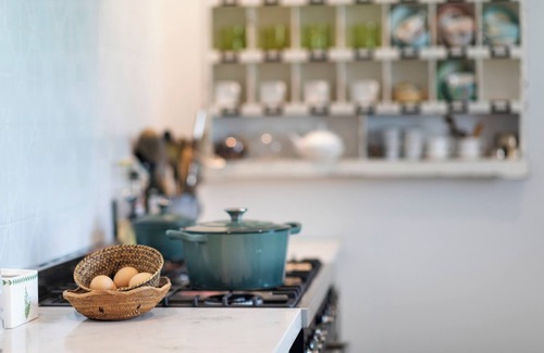 The cottage features two beautifully appointed bedrooms, each with a luxurious queen-sized bed, ensuring a restful night’s sleep after a day of exploring the village or nearby national parks. Fresh linens and soft, cozy bedding make these rooms a perfect sanctuary for relaxation.