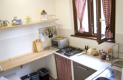 In the center of our organic farm, in an old building, recently renovated in green architecture, we rent an apartement with an independent entrence suitable for a maximum of 8 people. There are in fact 3 double bed and 2 single, divided in 3 rooms, each room has it private bathroom with a shower. Besides there are a confortable living room, a kitchen, a private park, a common laundry and a garden all around the house. At the entrance of the apartment there is a big terrace with a lovely landscape. The apartment is served by a free wifi signal for internet.