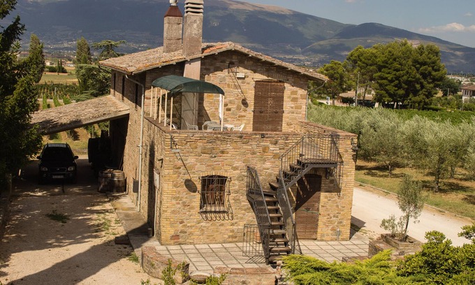 Splendid Umbrian rustic manor house located inside a property in the fine DOCG Sagrantino wine area. It can accommodate up to 5 people, has an equipped kitchen, independent terrace and has a 14x7 swimming pool shared with the owners' family and friends. The property has a size of about 10 hectares including DOCG Sagrantino vineyards, olive groves and truffle oaks. which easily allows compliance with the rules of social distancing provided for the prevention of COVID-19. Structures and common areas are periodically subjected to sanitation. The main house is divided into two independent floors, the one in the present description is the upper floor. which has an independent entrance inside the property. The lower floor is not inhabited by the owners and is used as a warehouse.